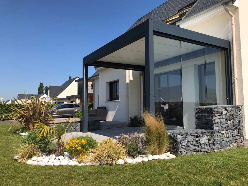 La pergola à toile rétractable est l’alliée idéale si vous ne voulez pas abriter de façon définitive votre extérieur. Avec un design minimaliste elle garantie une vue panoramique sur le jardin avec un apport de lumière maximal dans votre maison.